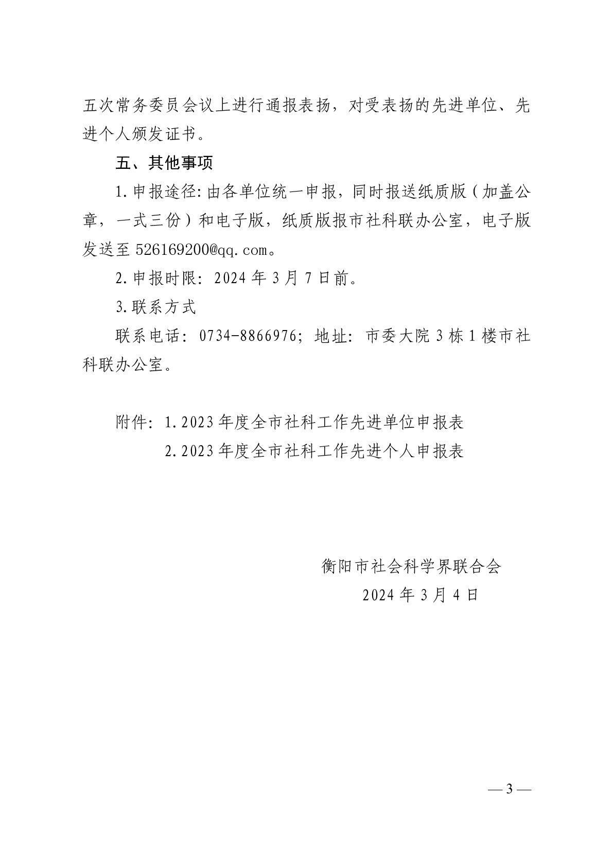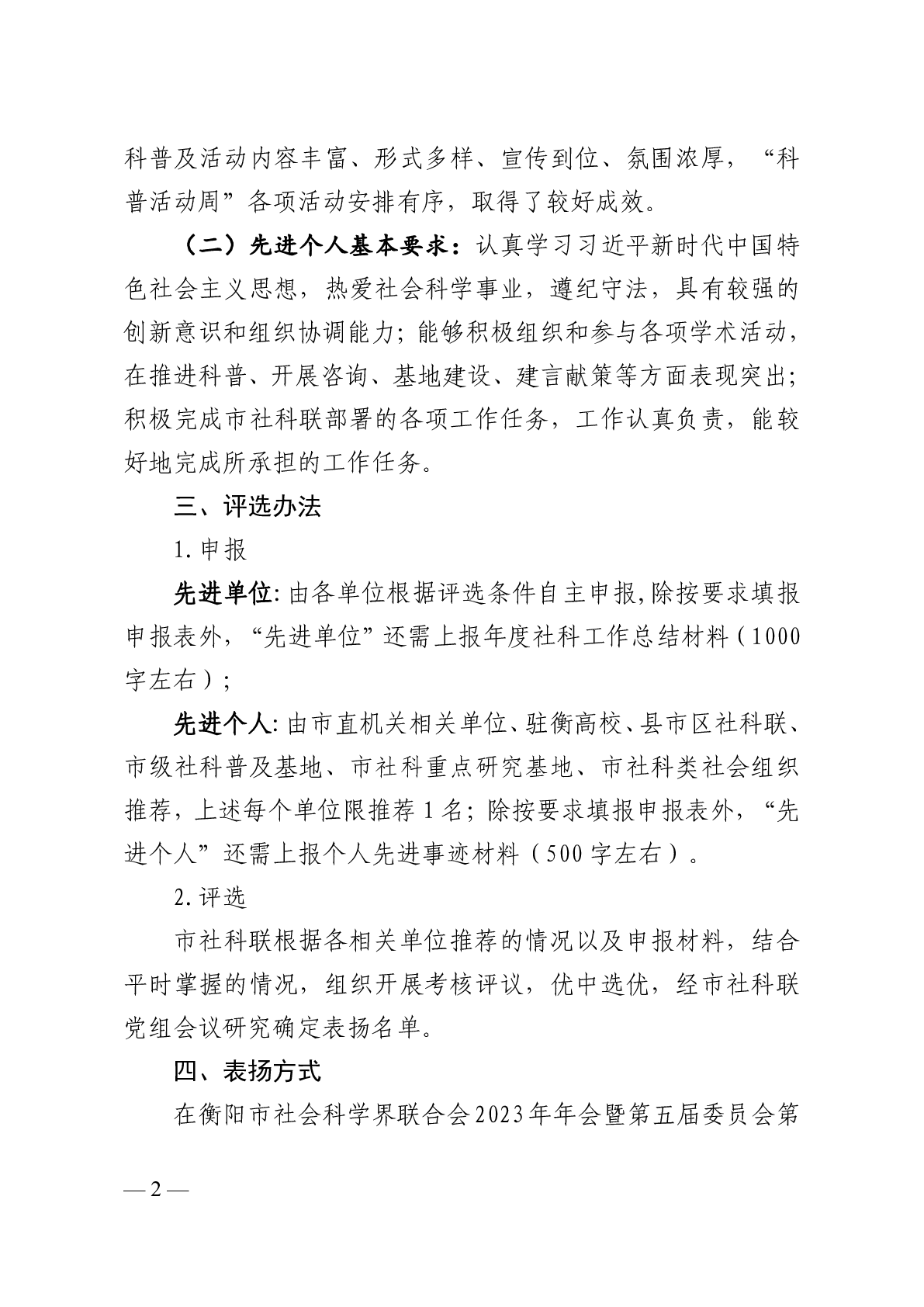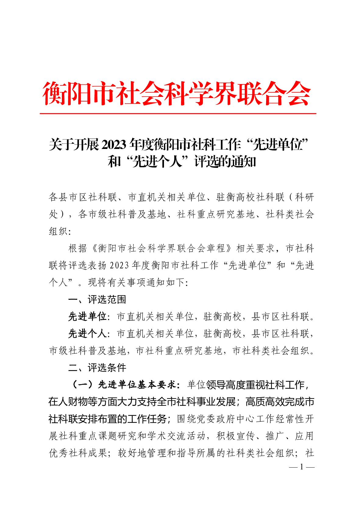 关于推荐2023年度衡阳市社科工作“先进单位”和“先进个人”的通知.docx