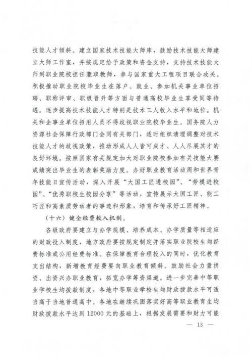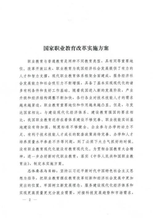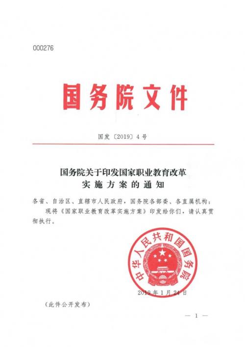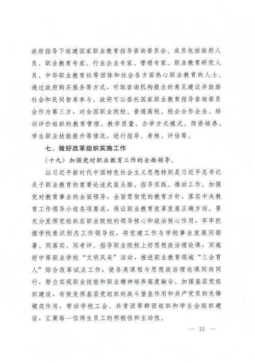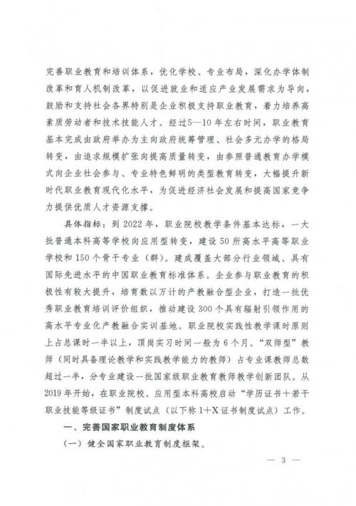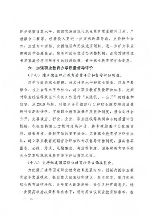 国务院关于印发国家职业教育改革实施方案的通知