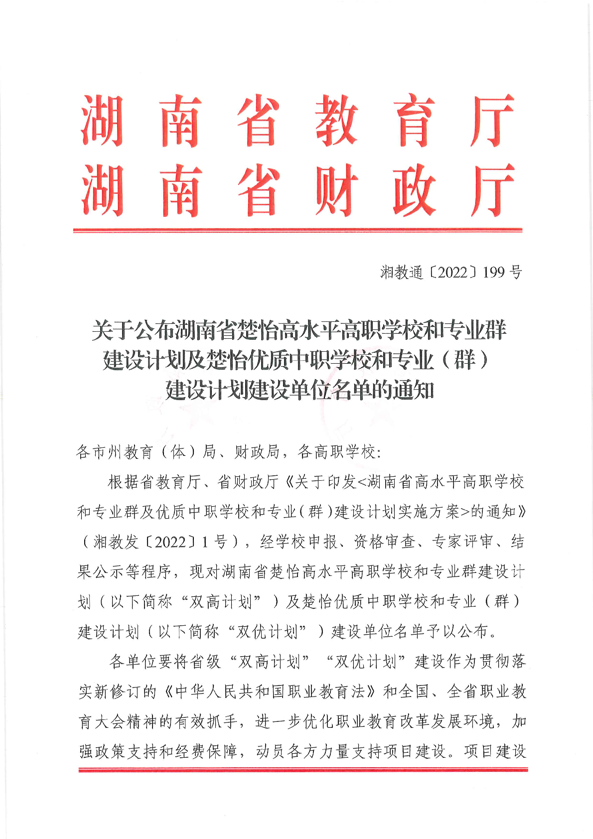 湘教通[2022]199号 ?关于公布湖南省楚怡高水平高职学校和专业群建设计划及楚怡优质中职学校和专业(群)建设计划建设单位名单的通知.pdf