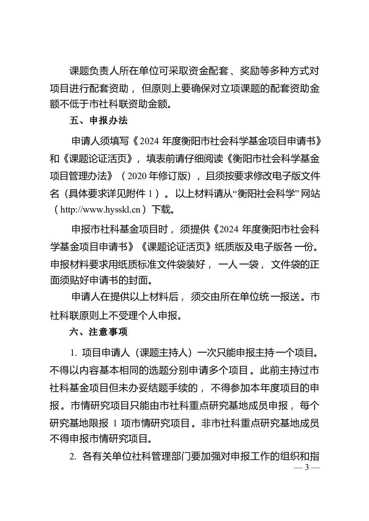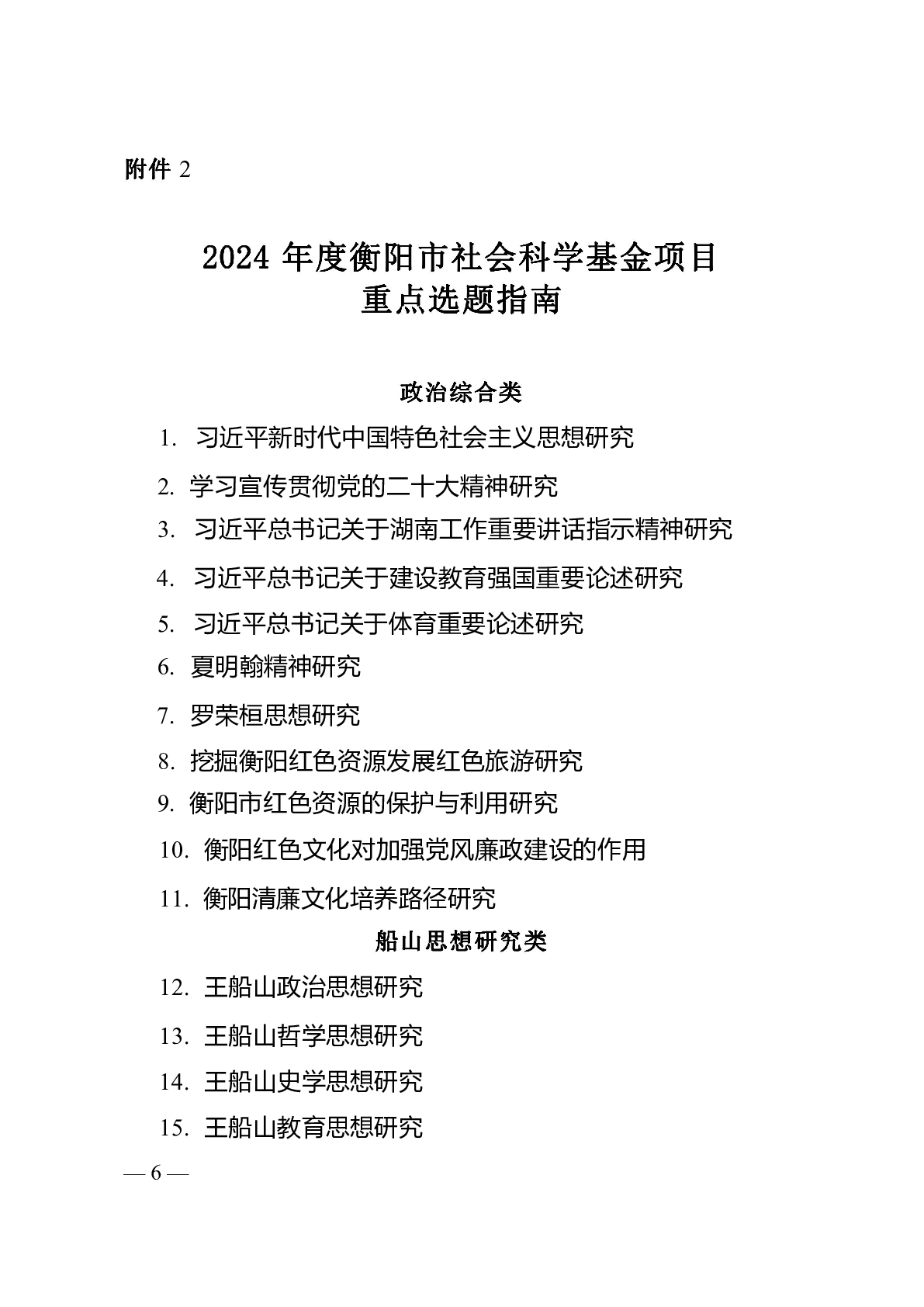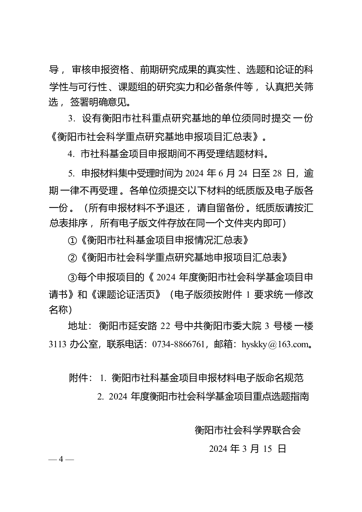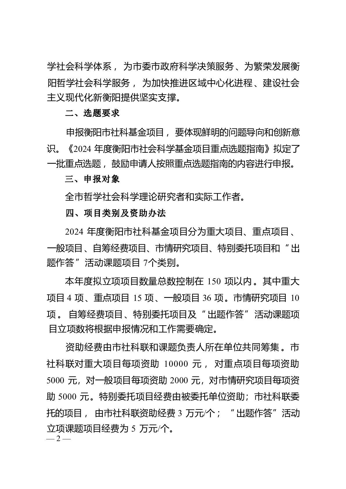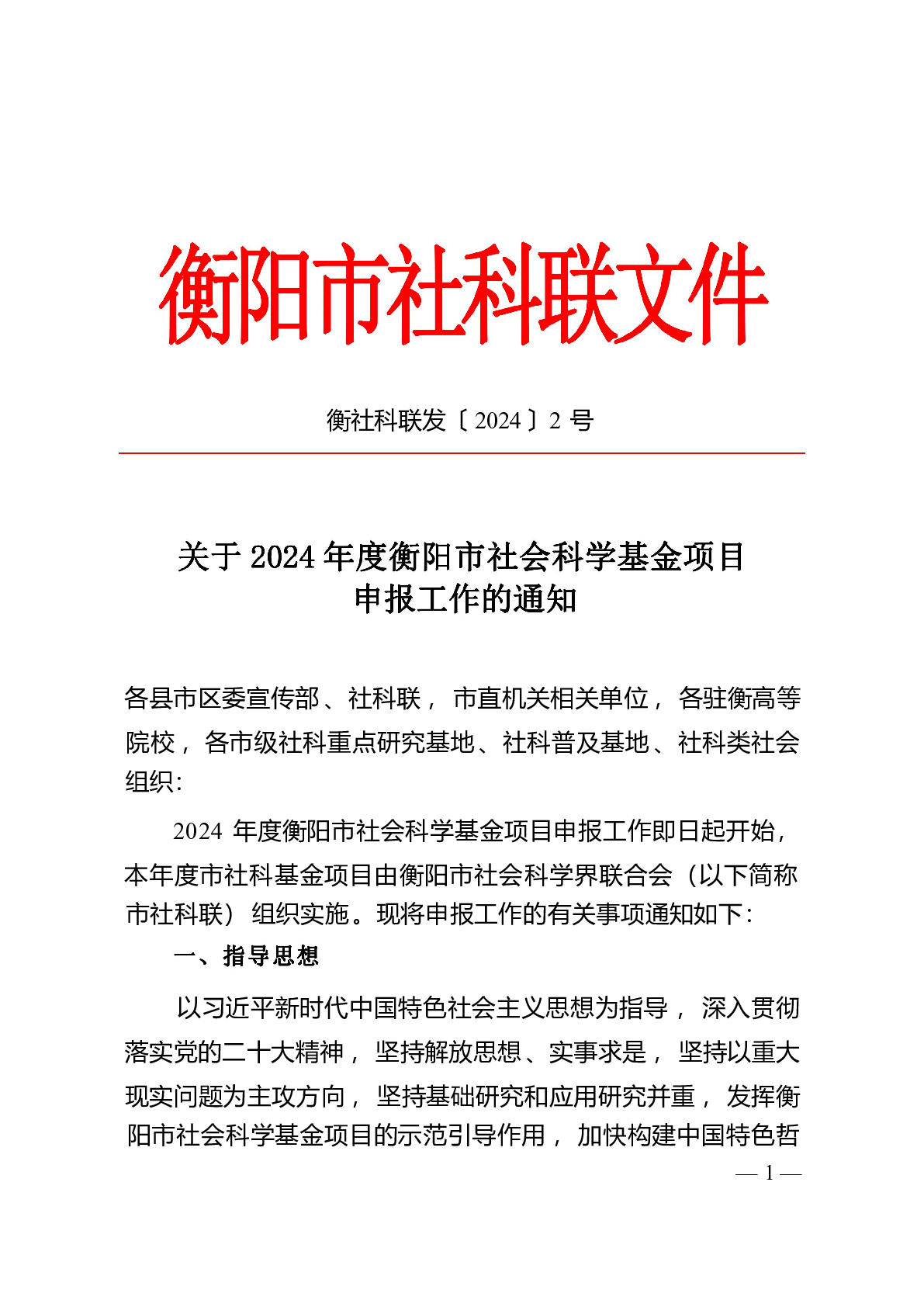 关于2024年度衡阳市社会科学基金项目申报工作的通知