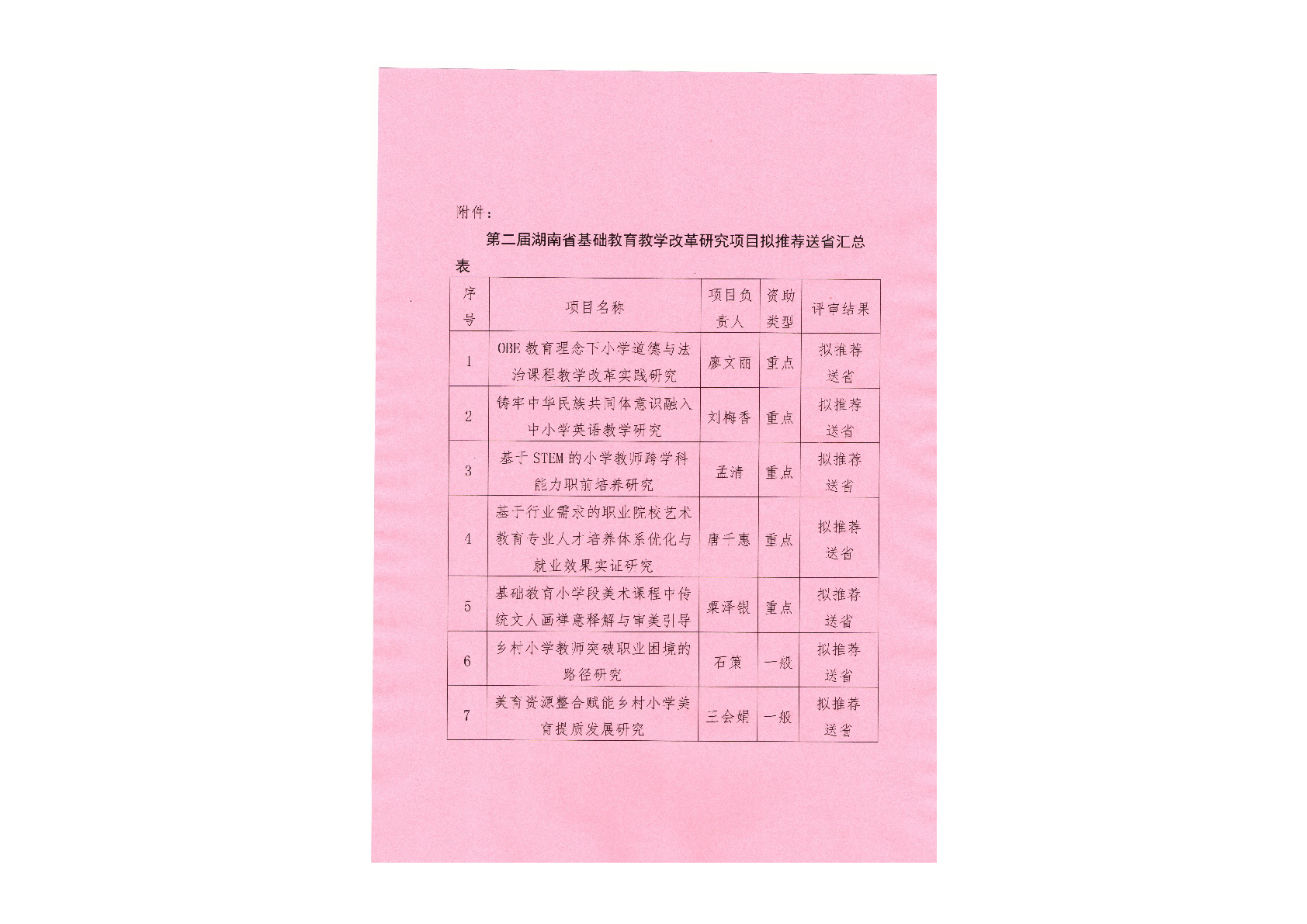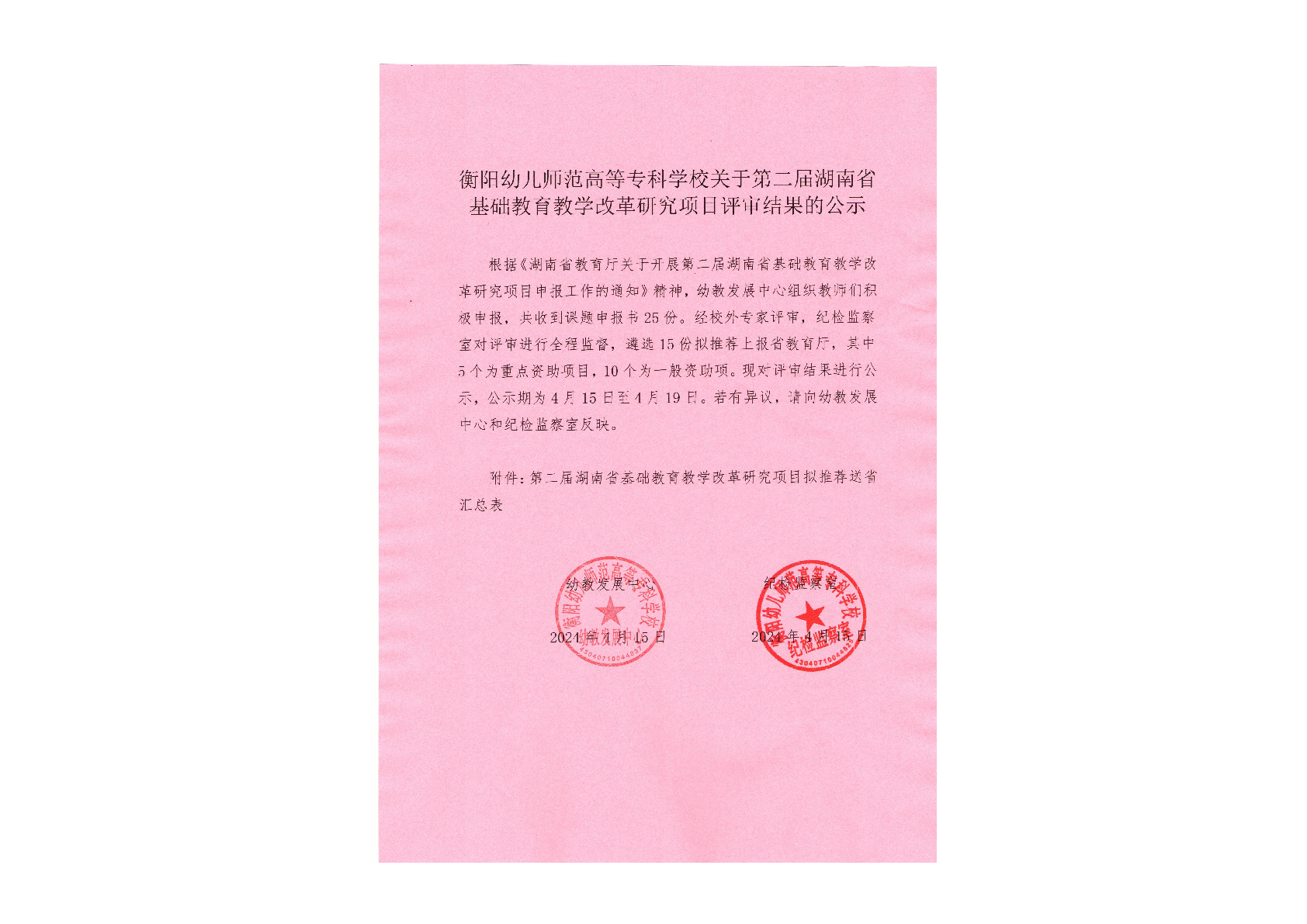 衡阳幼儿师范高等专科学校关于第二届湖南省基础教育教学改革研究项目评审结果的公示.pdf
