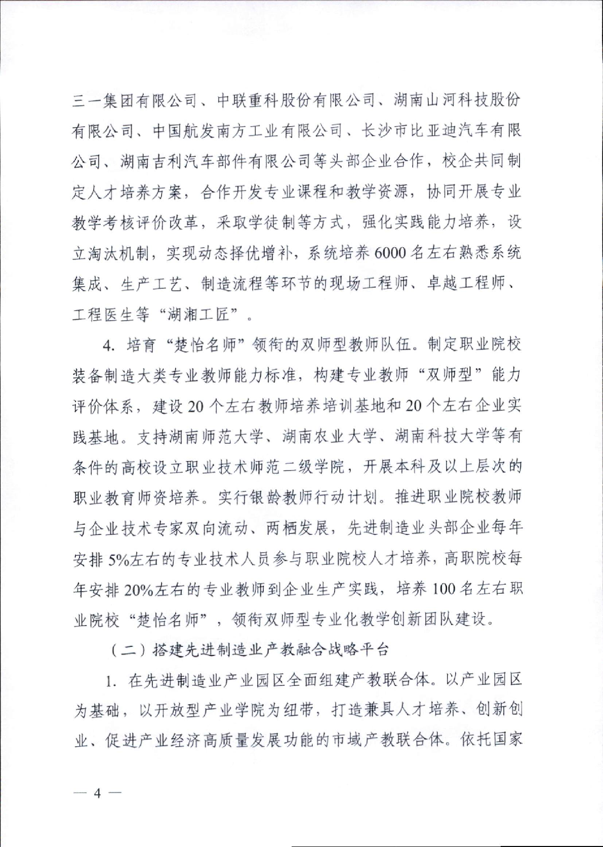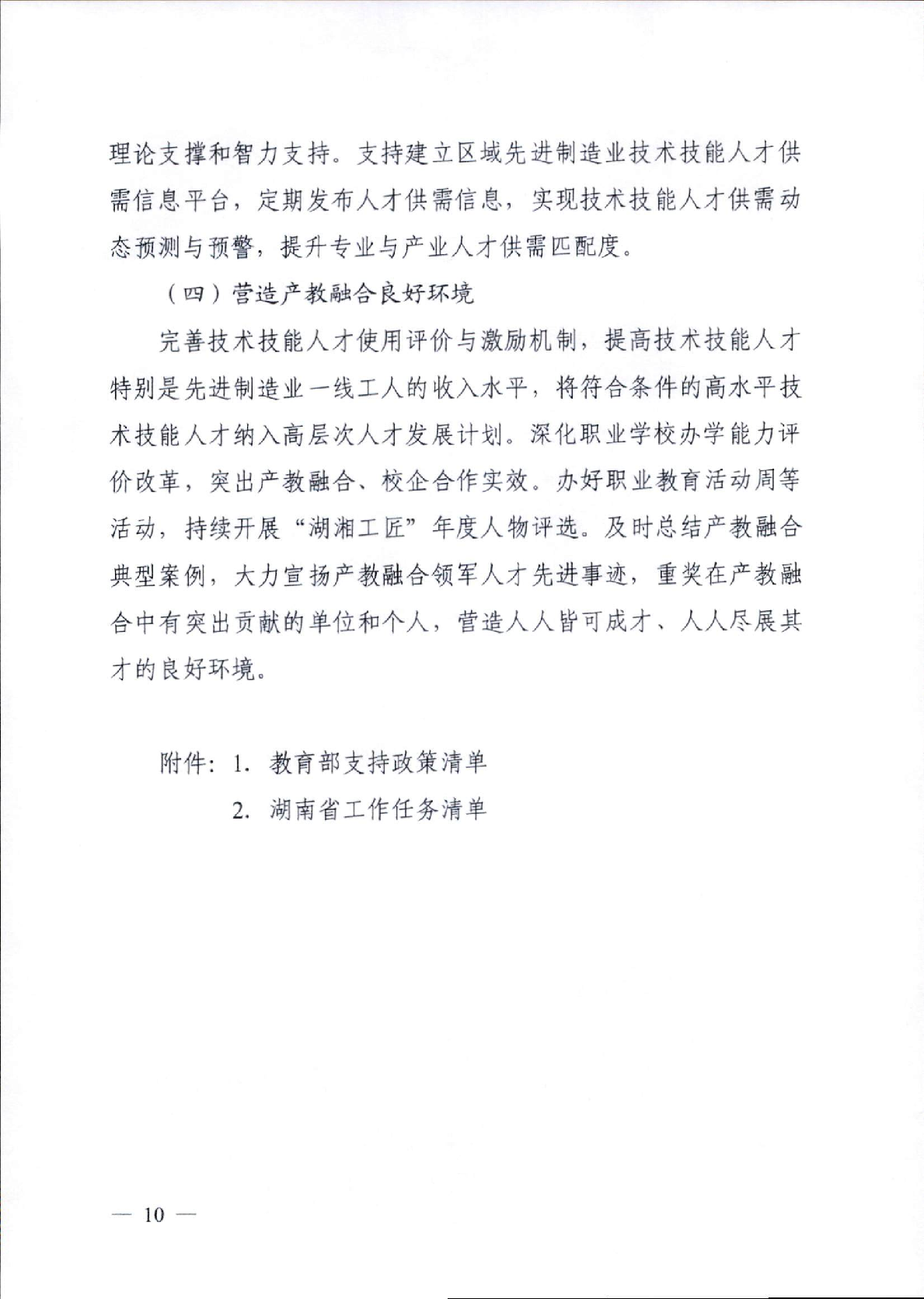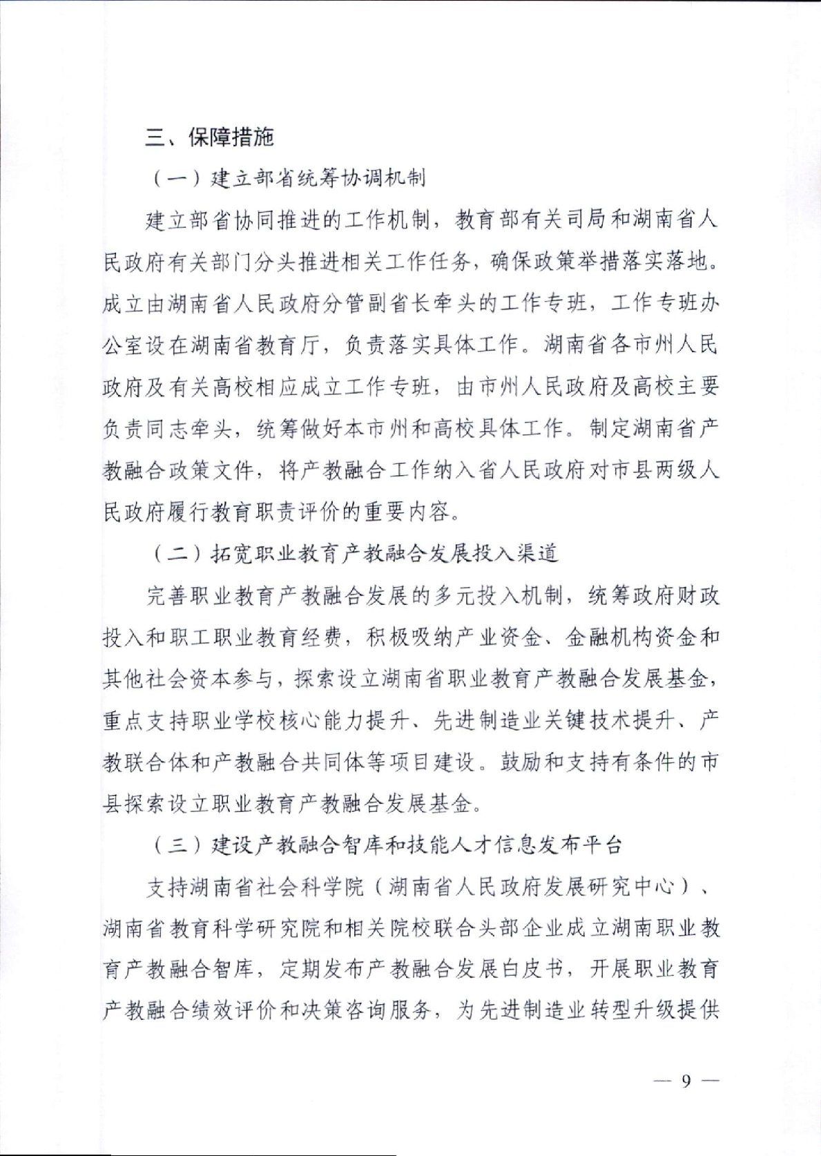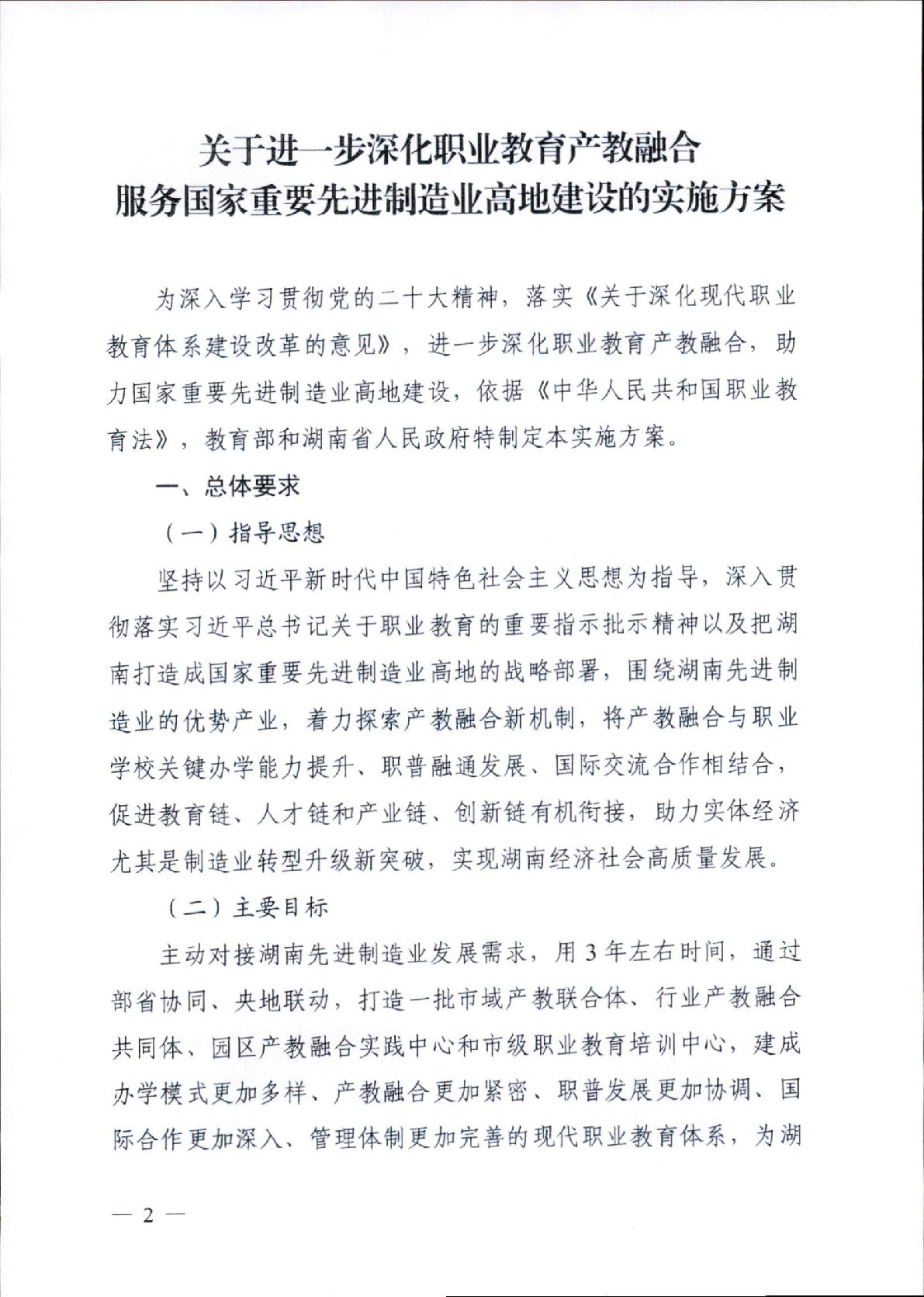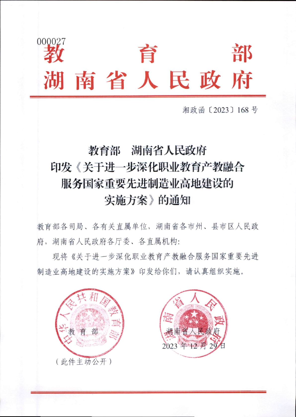教育部 湖南省人民政府《关于进一步深化职业教育产教融合服务国家重要先进制造业高地建设的实施方案》