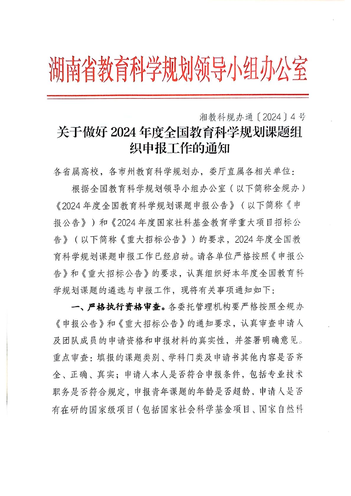 转发关于做好2024年度全国教育科学规划课题组织申报工作的通知