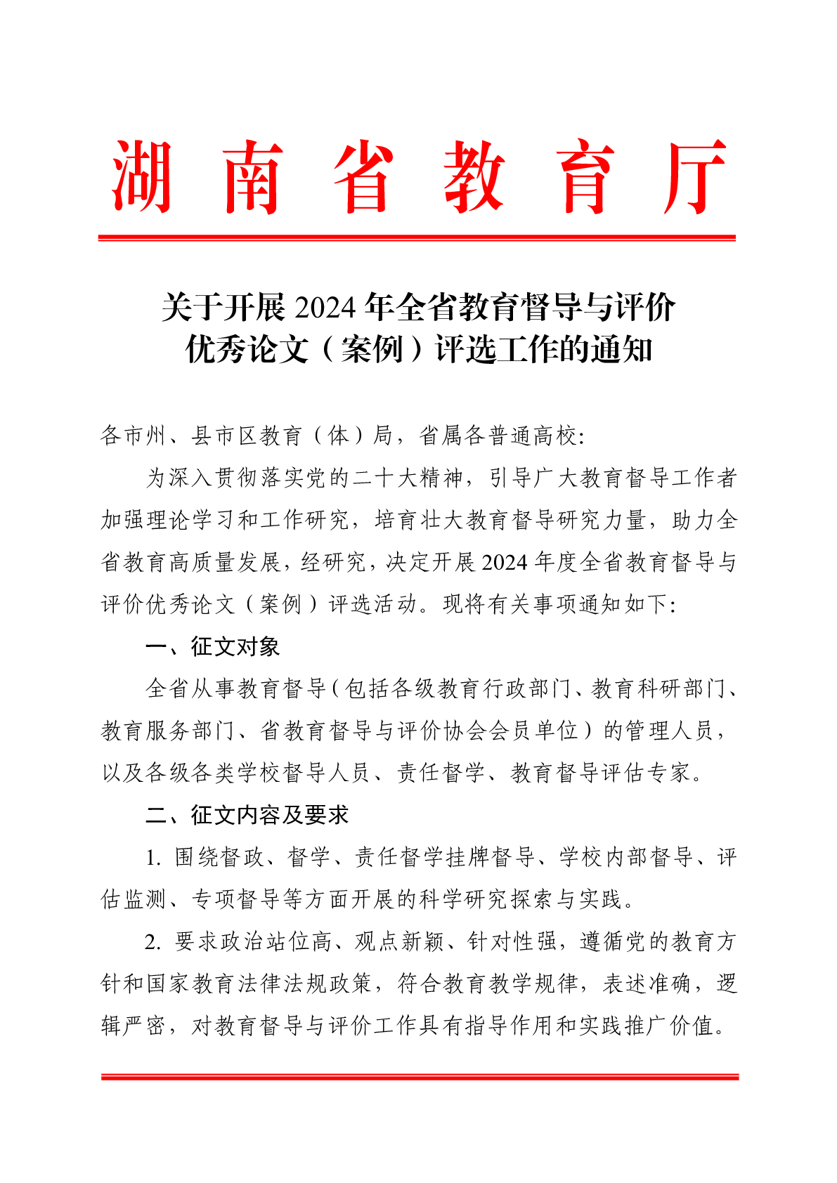 关于开展2024年全省教育督导与评价优秀论文(案例)评选工作的通知