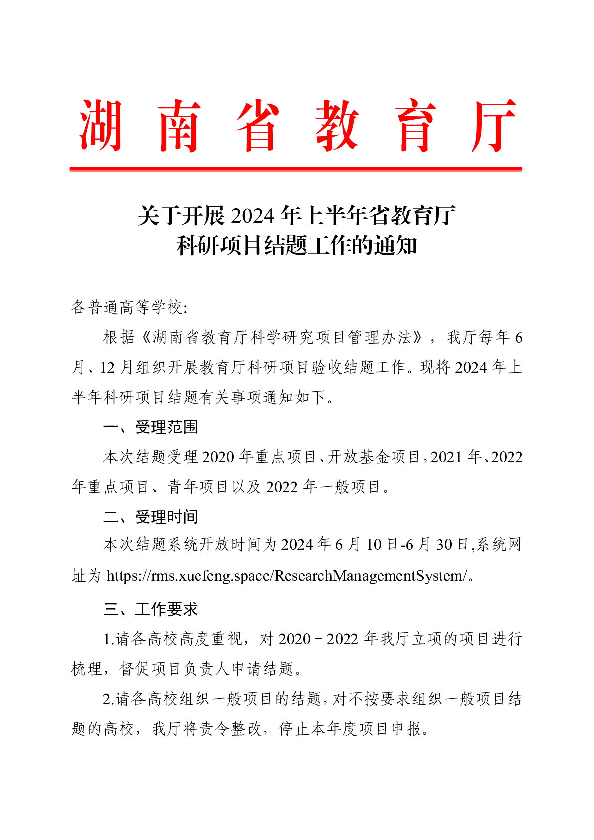关于开展2024年上半年省教育厅科研项目结题工作的通知