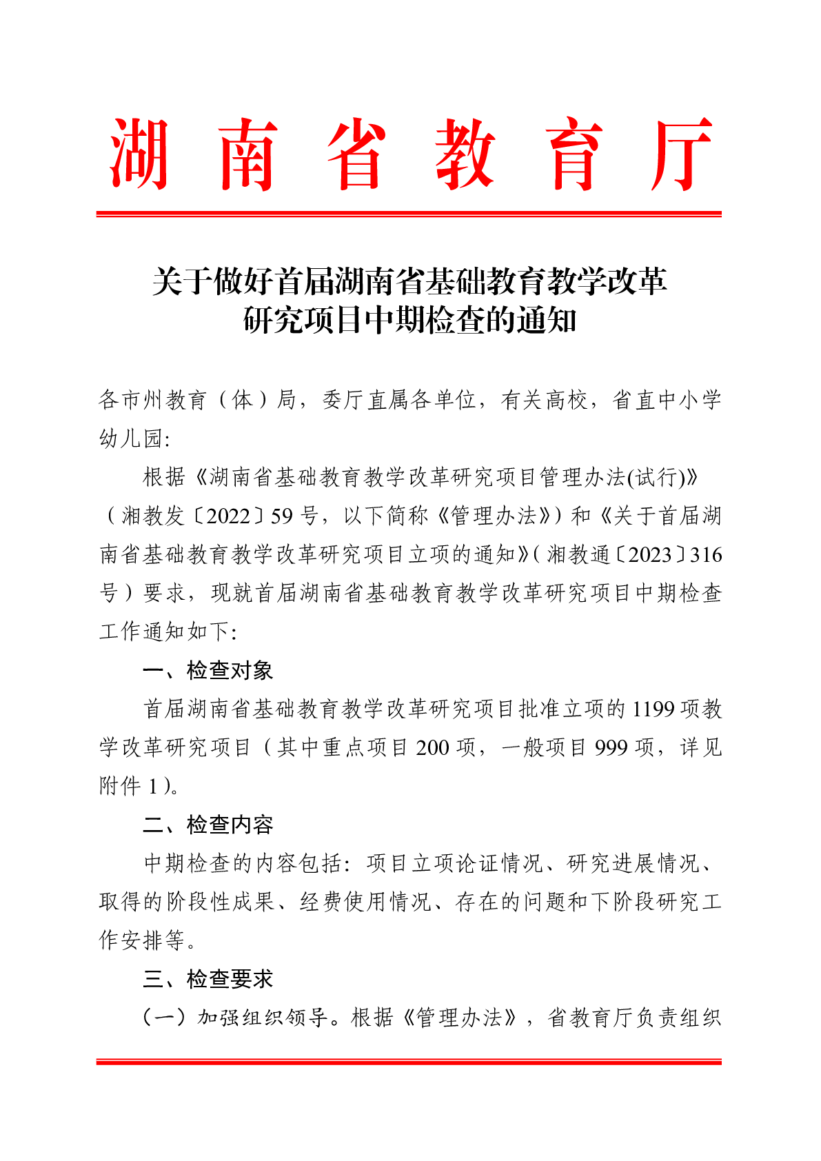 关于做好首届湖南省基础教育教学改革研究项目中期检查的通知.pdf