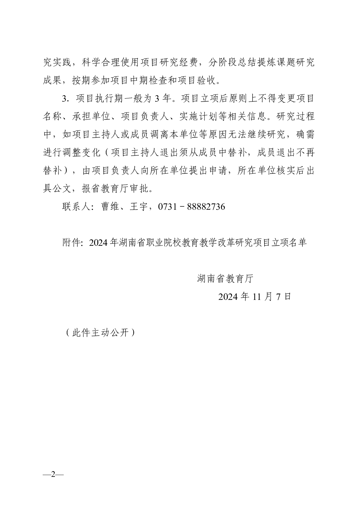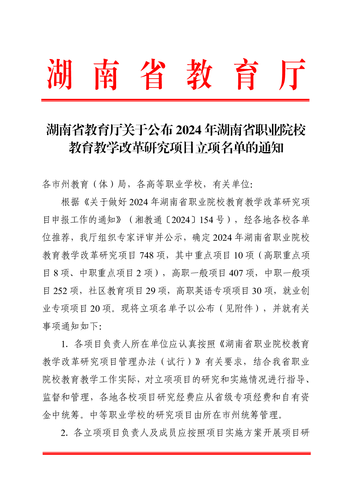湖南省教育厅关于公布2024年湖南省职业院校教育教学改革研究项目立项名单的通知.pdf