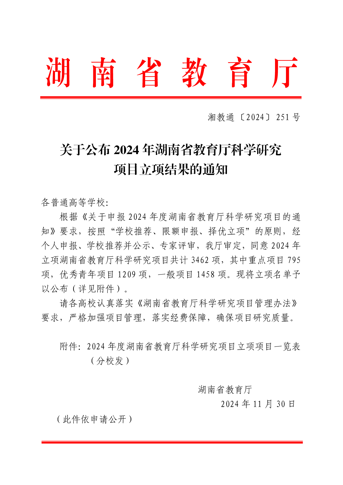 关于公布2024年湖南省教育厅科学研究项目立项结果的通知.pdf