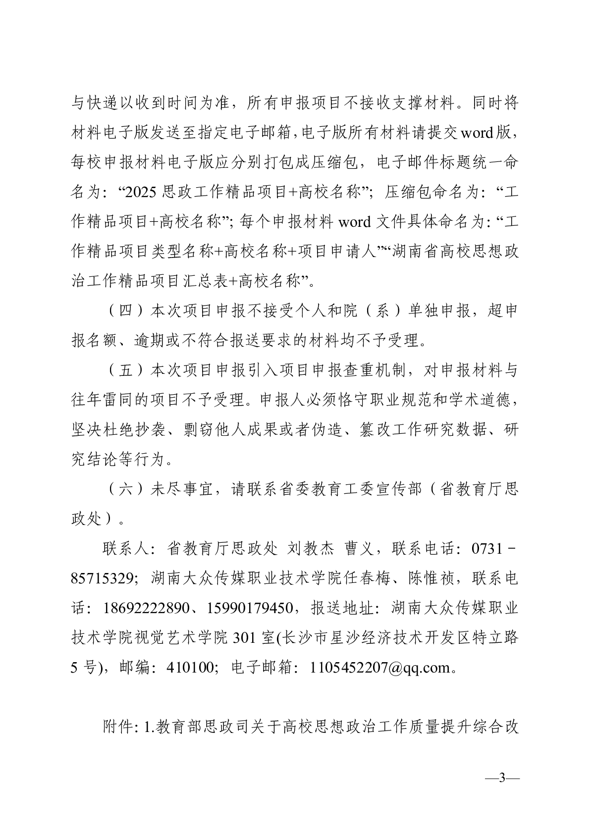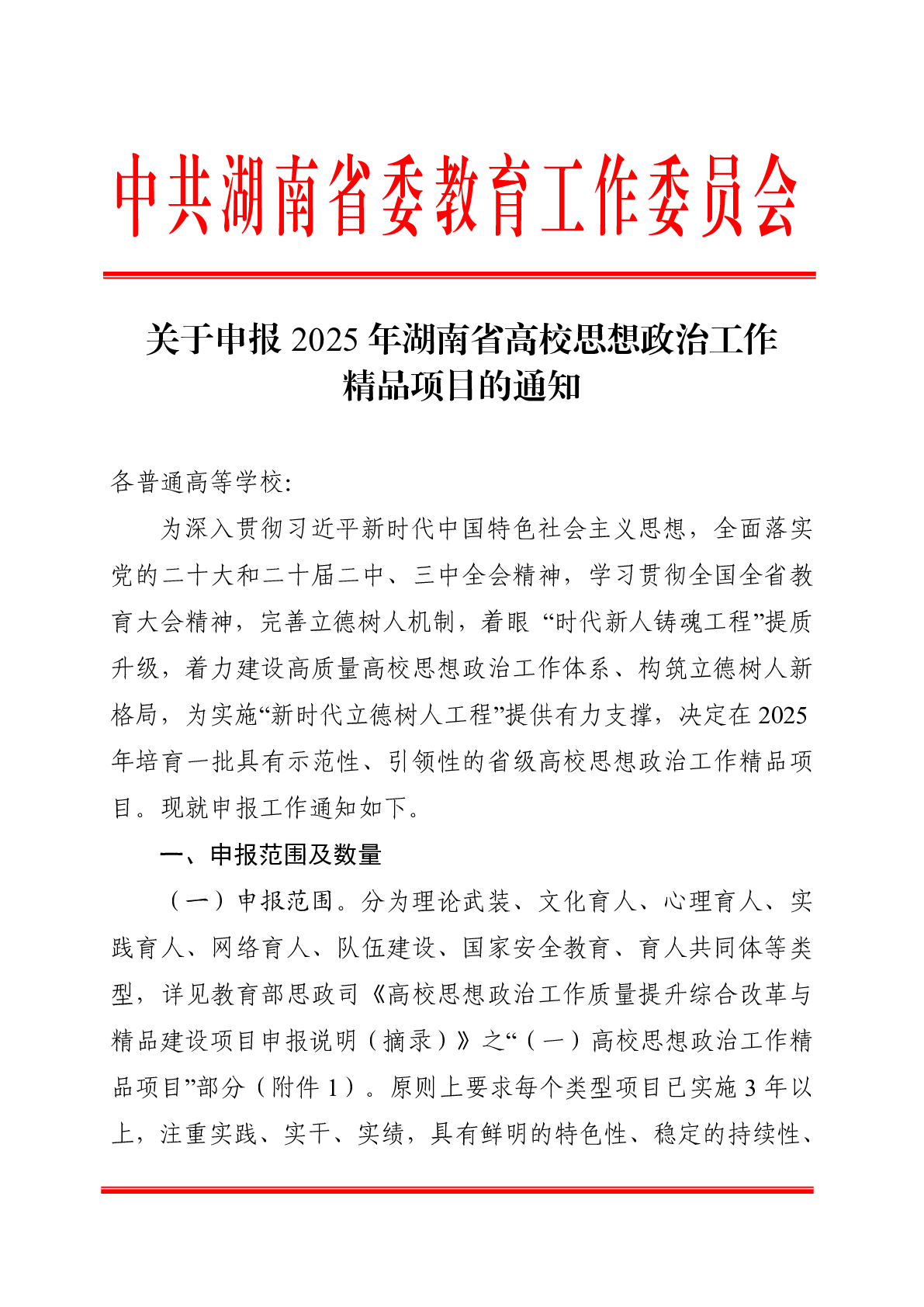 关于申报2025年湖南省高校思想政治工作精品项目的通知(附件一).pdf