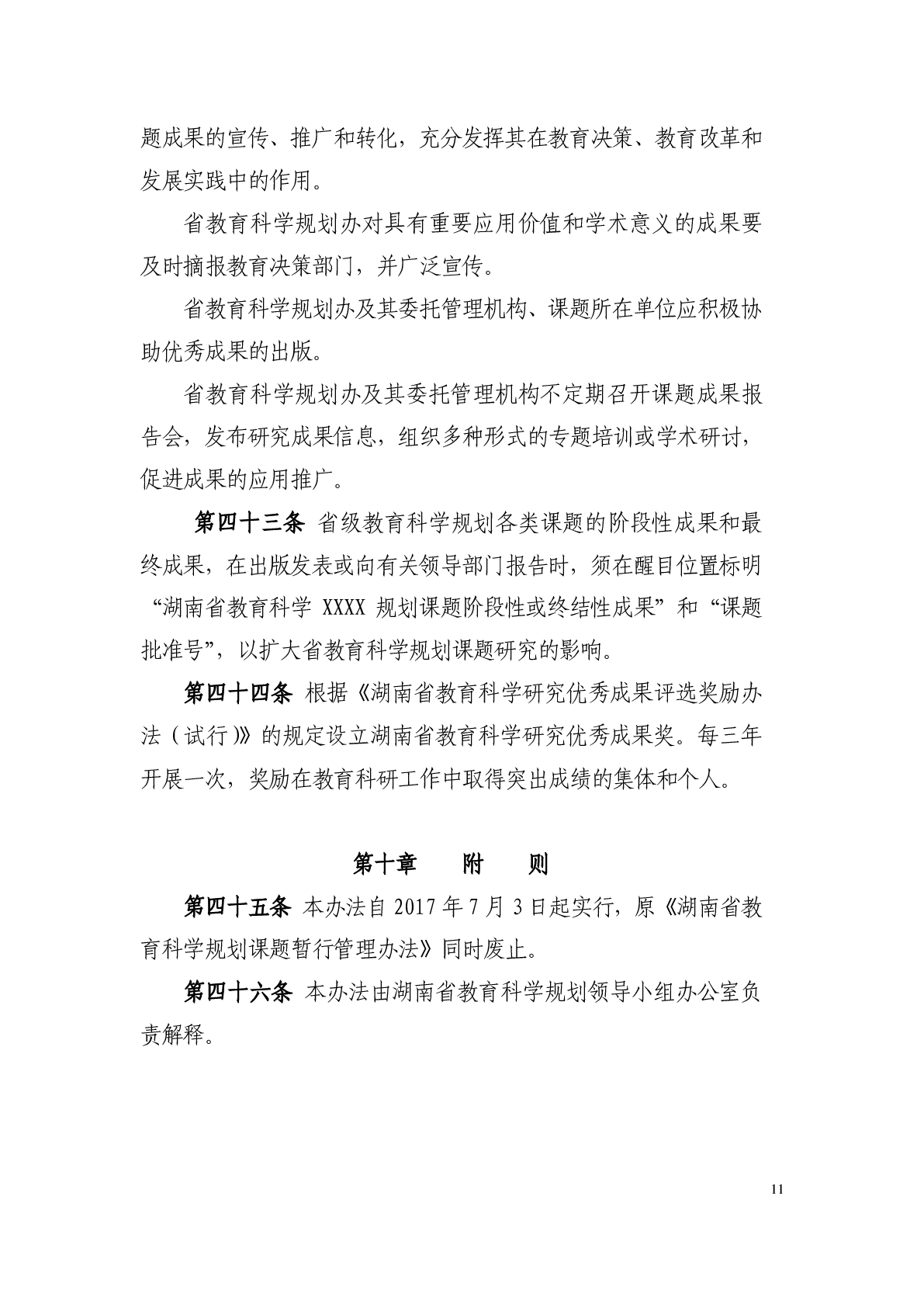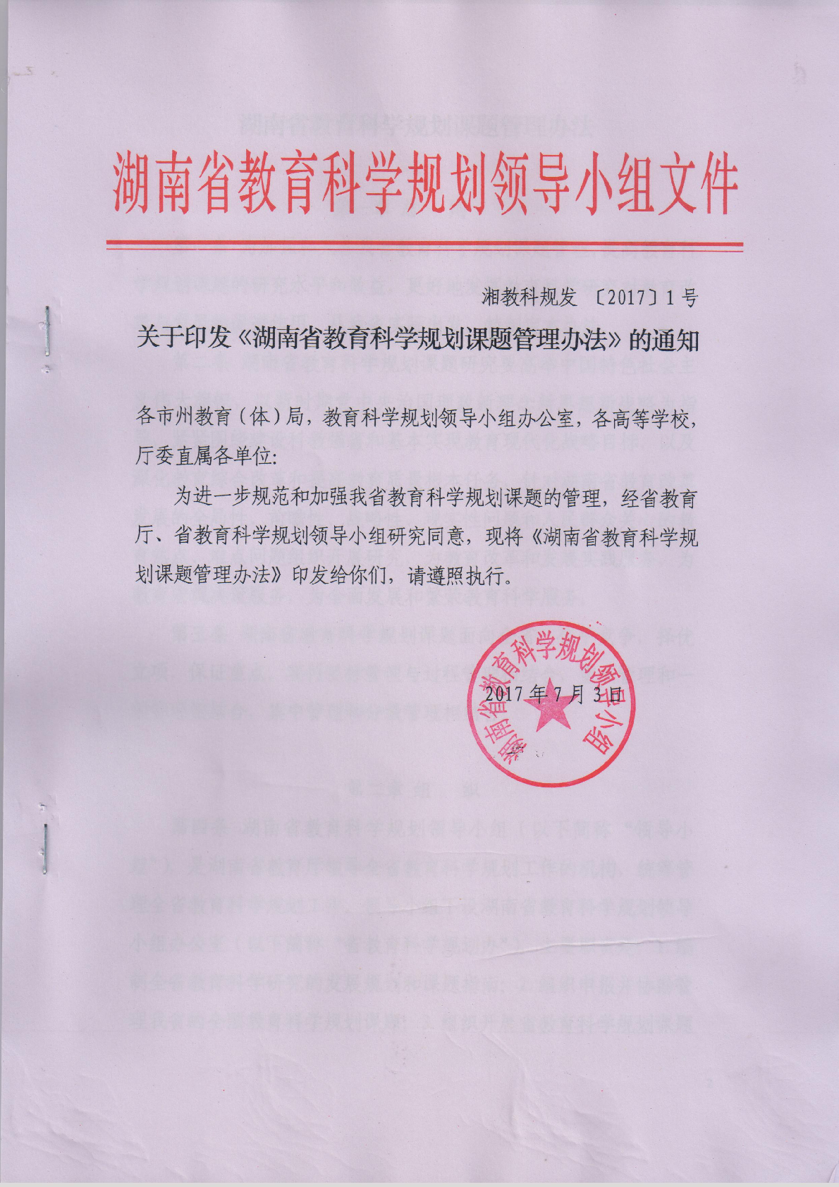 《湖南省教育科学规划课题管理办法(2017年7月修订)》