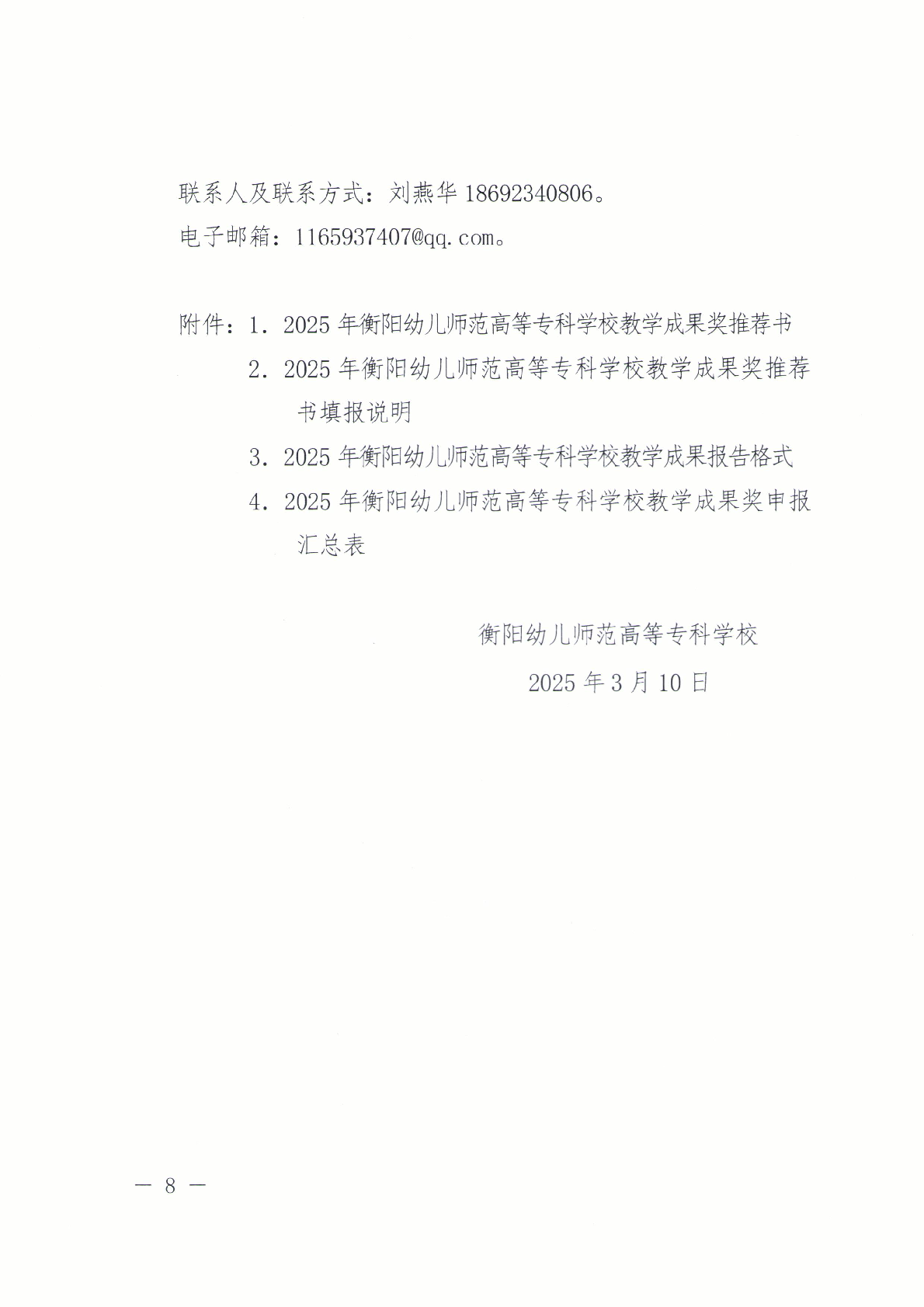 附件1: 2025年衡阳幼儿师范高等专科学校教学成果奖推荐书.doc