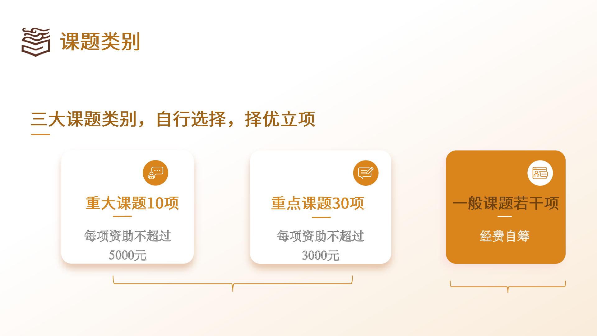 (四)课题分为重大课题、重点课题和一般课题,申报人可按类别自行申报。重大课题申报人须具有副高级(含)以上专业技术职称(职务)。