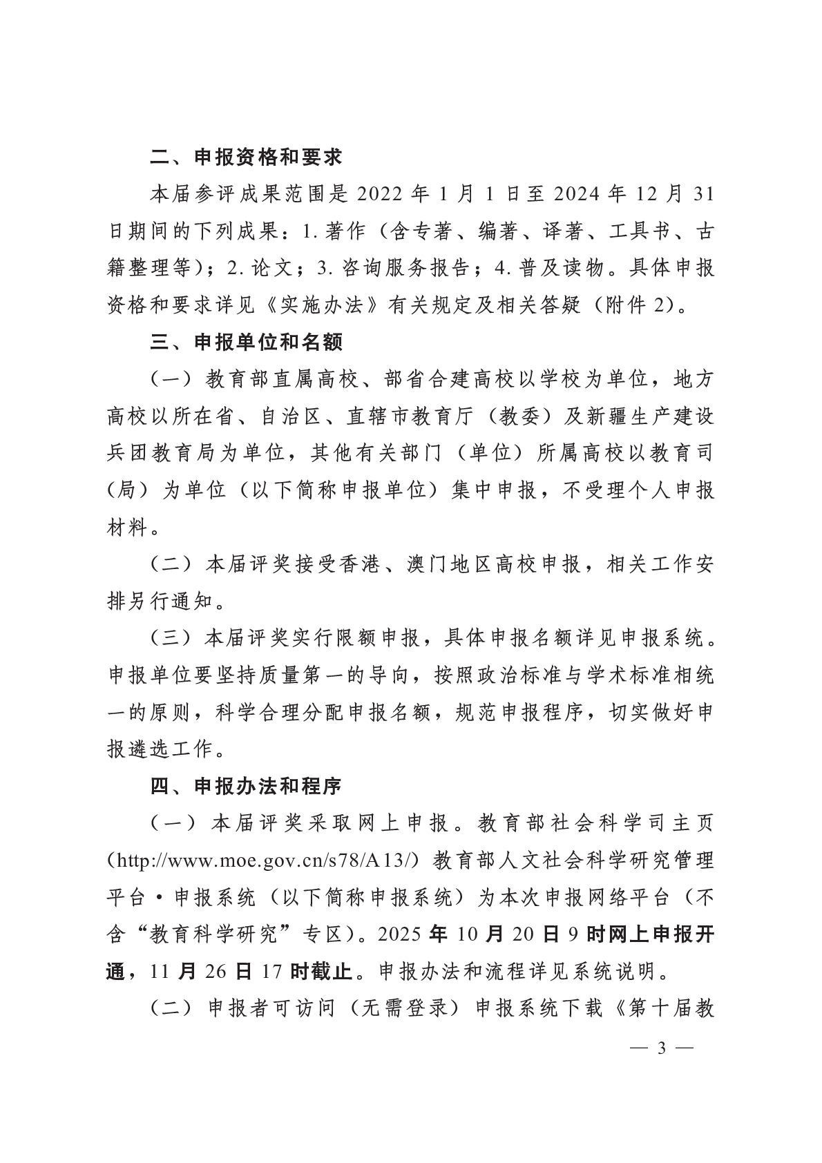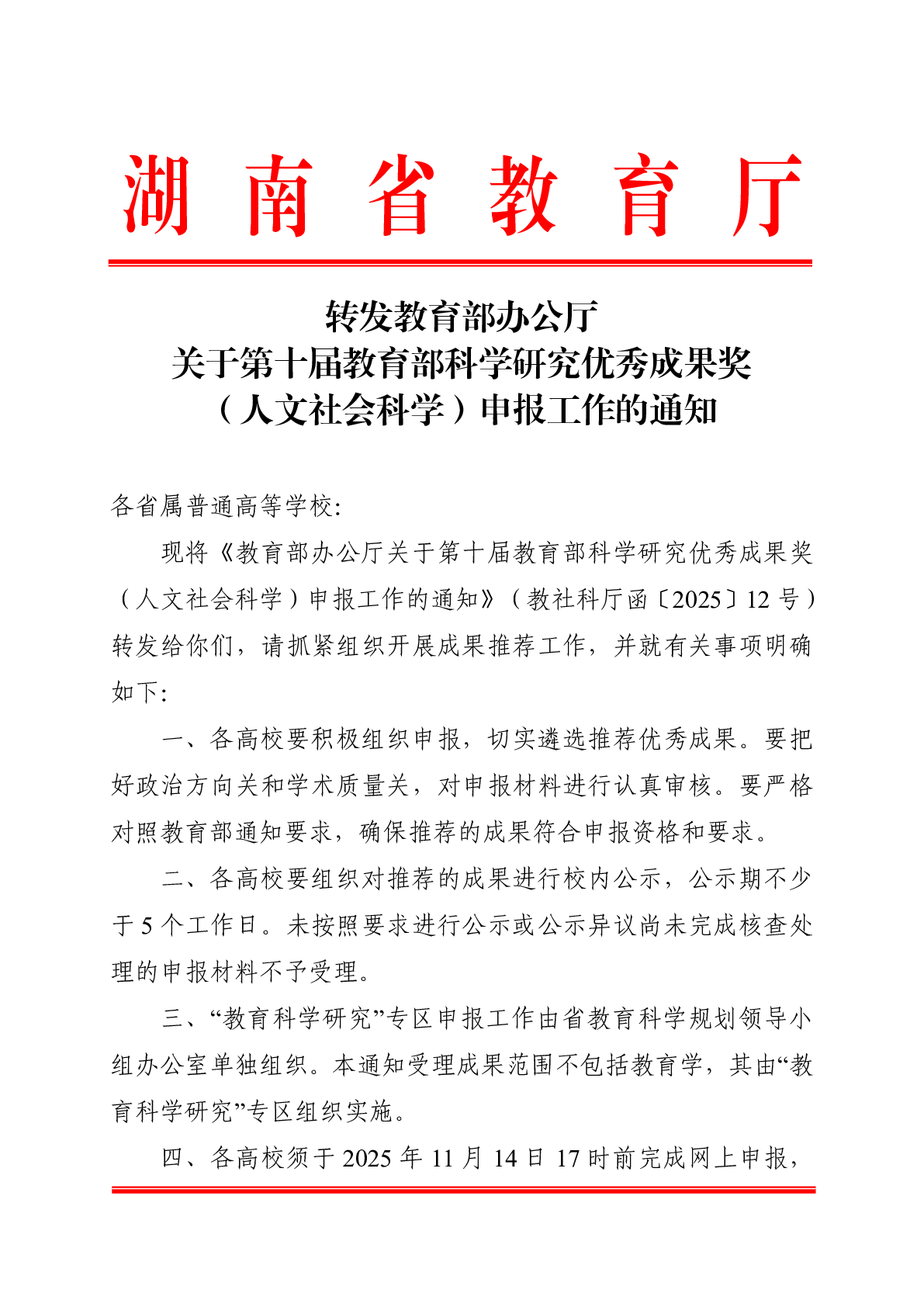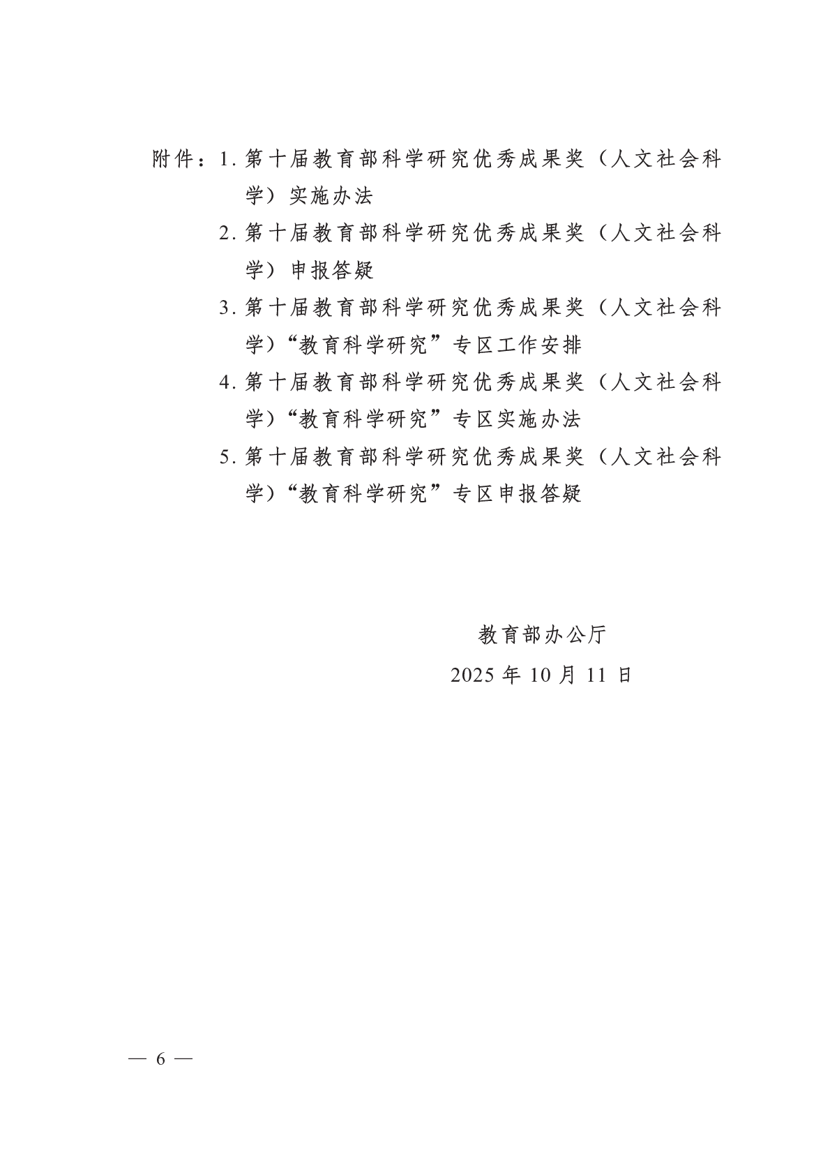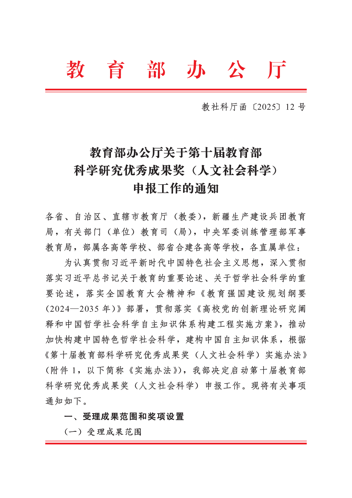 教社科厅函〔2025〕12号 教育部办公厅关于第十届教育部科学研究优秀成果奖(人文社会科学)申报工作的通知.pdf