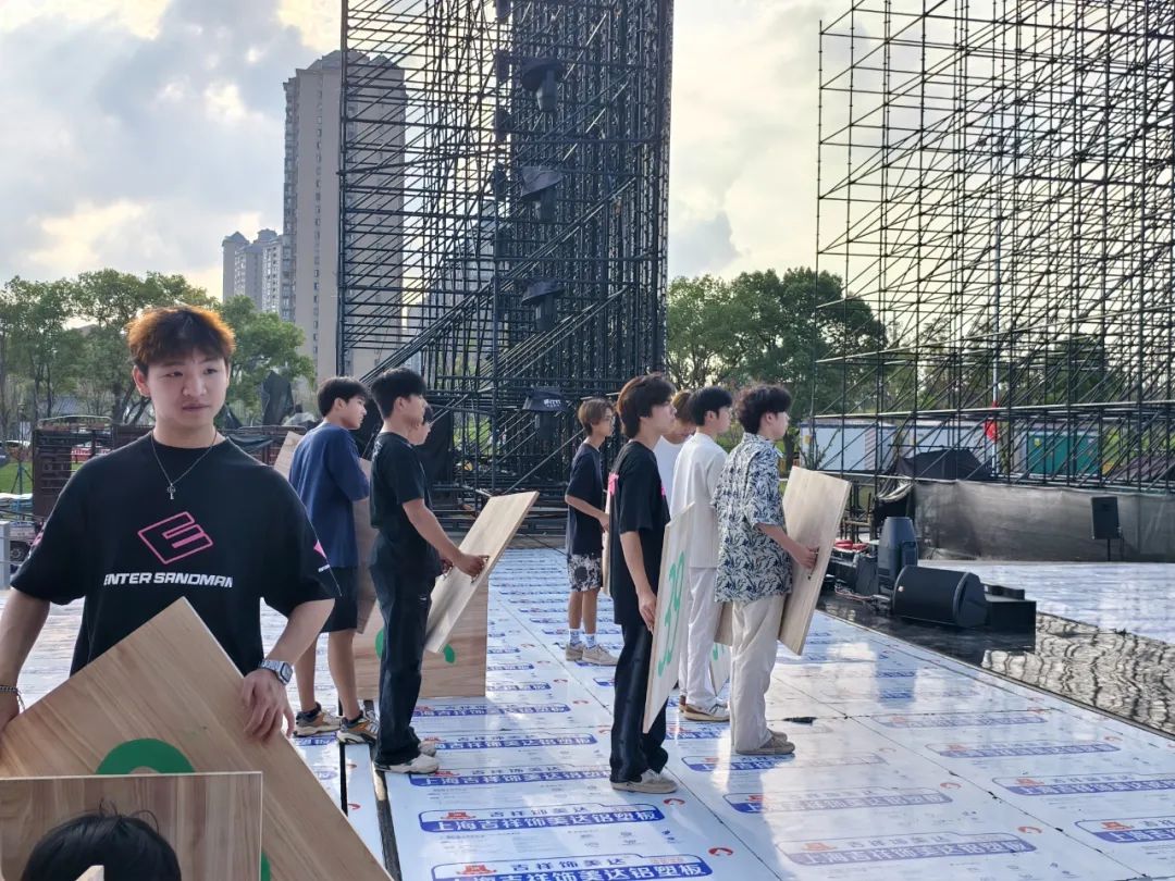 经过第一阶段的刻苦训练,同学们开始前往酃湖公园主会场进行舞台合成,走台--彩排--联排。然而九月的衡阳户外仿佛置身于蒸笼之中,炎炎烈日汗水不停地从他们额头滑落,但是同学们仍然能够克服困难,认真对待每一次的排练任务。