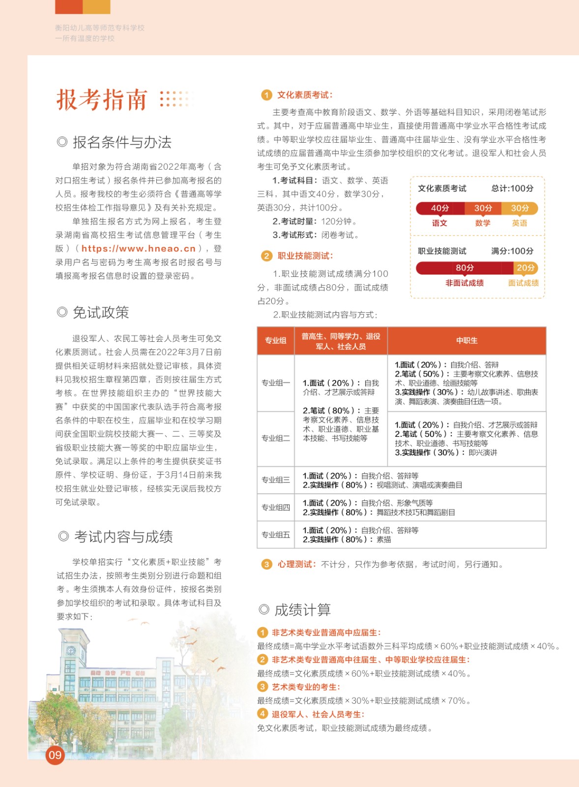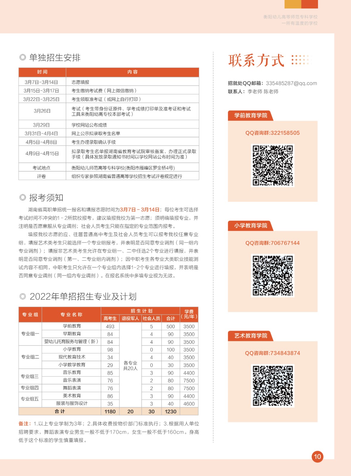 2022年衡阳幼儿师范高等专科学校单独招生简章