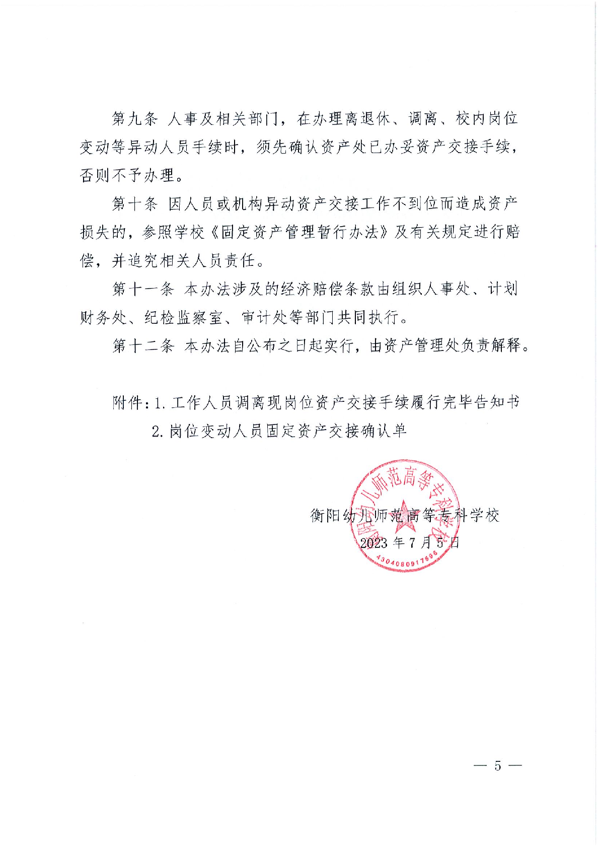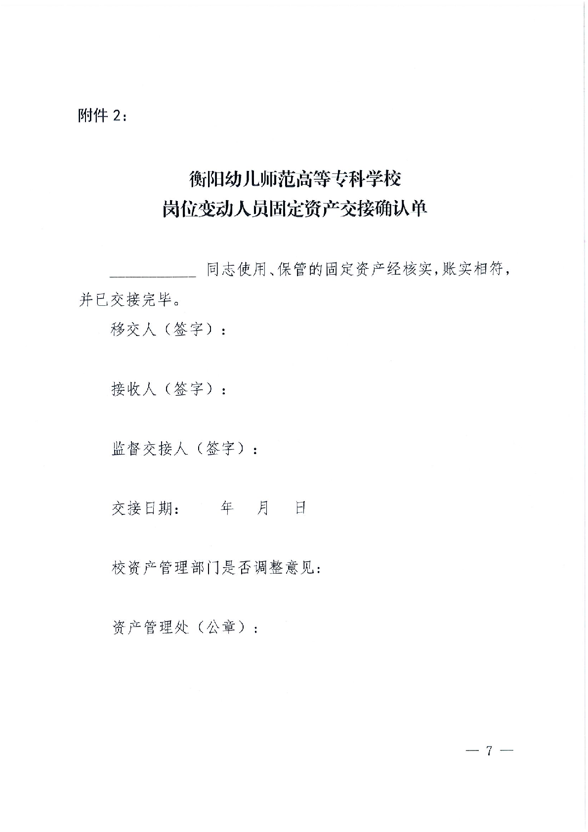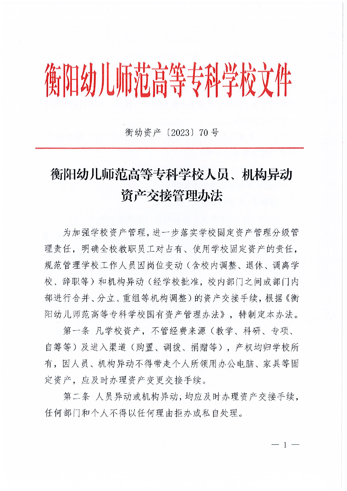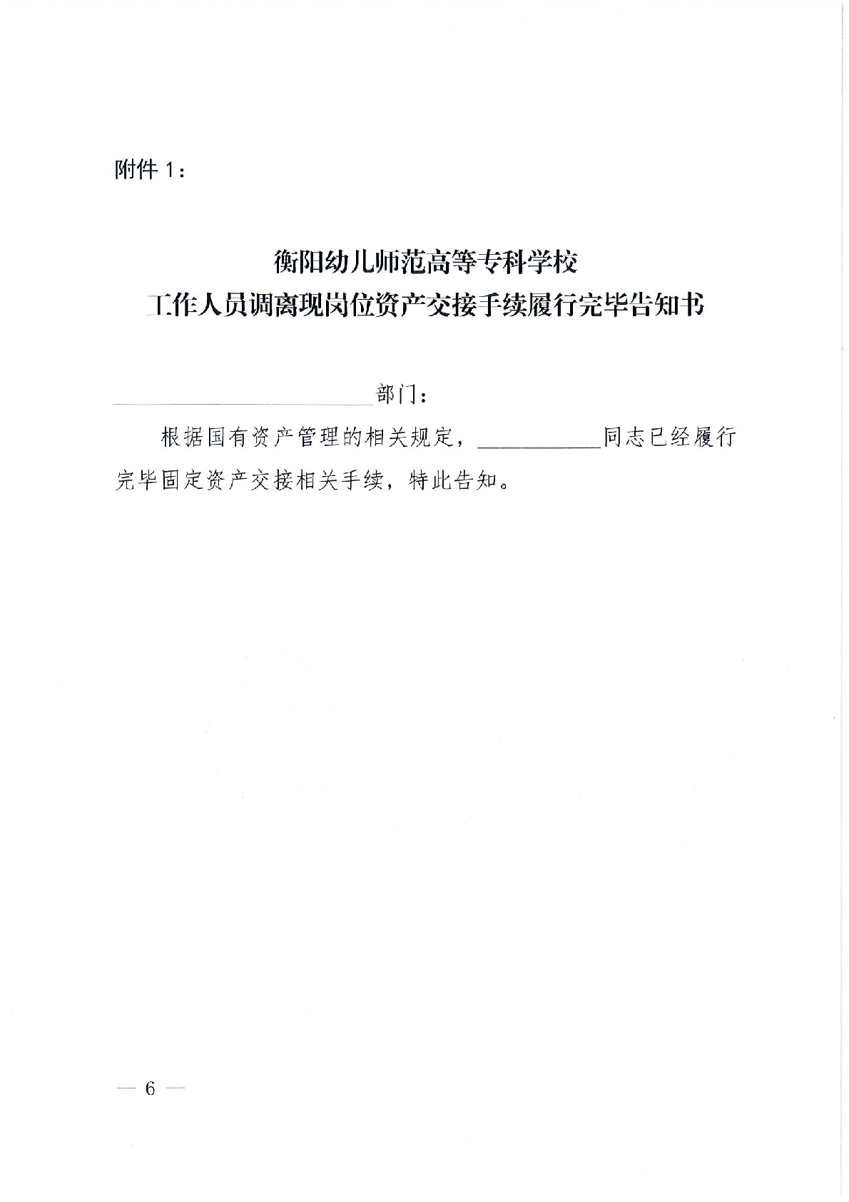 衡阳幼儿师范高等专科学校人员、机构异动资产移交管理办法